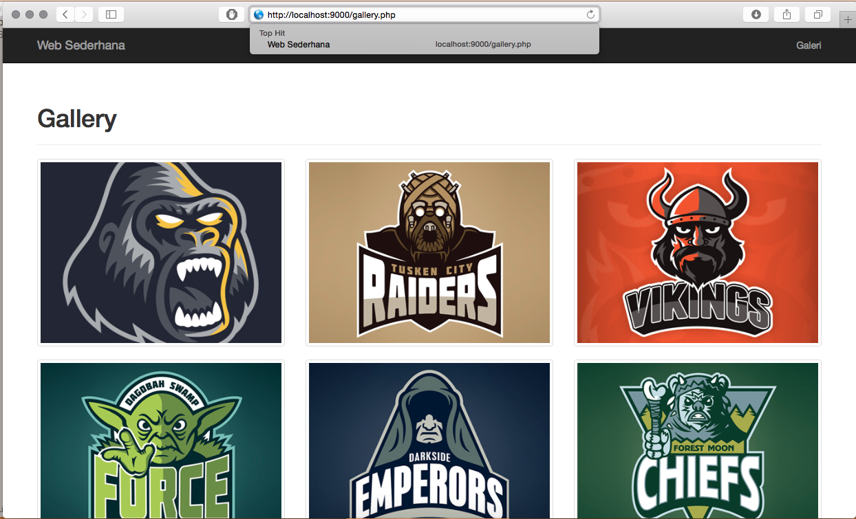 Kemudian untuk memeriksa satu persatu bisa dengan membuka alamat http://localhost:9000/index.php dan http://localhost:9000/gallery.php